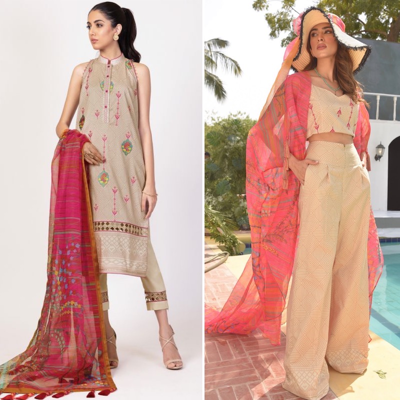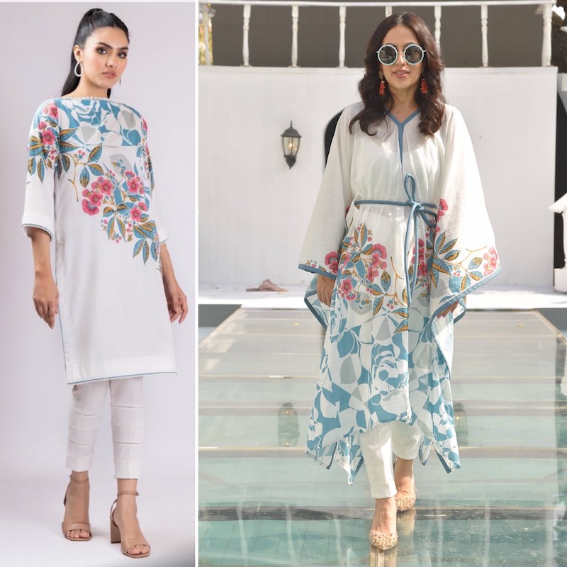 Last but not least, given the fine finish on Al Karam lawn, the fabric works so well for styles that need drape and flow. Kaftans, again, are a bit of fusion but look so good in summer. A longer kaftan will not need trousers and a shorter one can be styled like a tunic, with pants. See how it’s done and try doing it yourself! Belt up for added oomph.