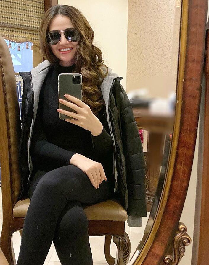 We love this throwback look shared by the newly-married Sana Javed. Black skinny jeans, a turtle neck top, and a puffer jacket are all you need to ace this look.