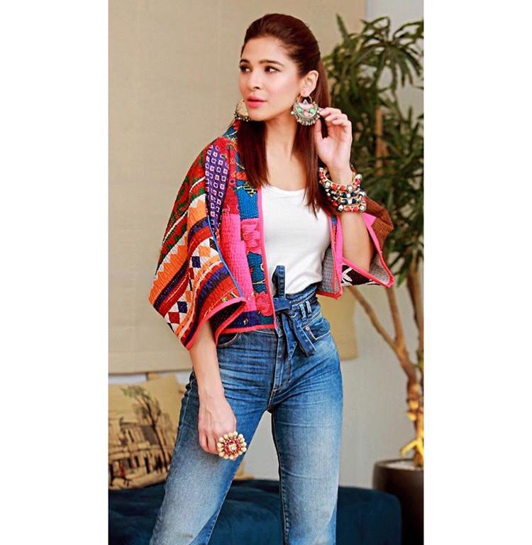 Ayesha Omar’s beautiful bolero can be perfect for all seasons. We love the colors and the funky factor that this piece can add to your outfit. Besides, high waist denim jeans are always a winner.