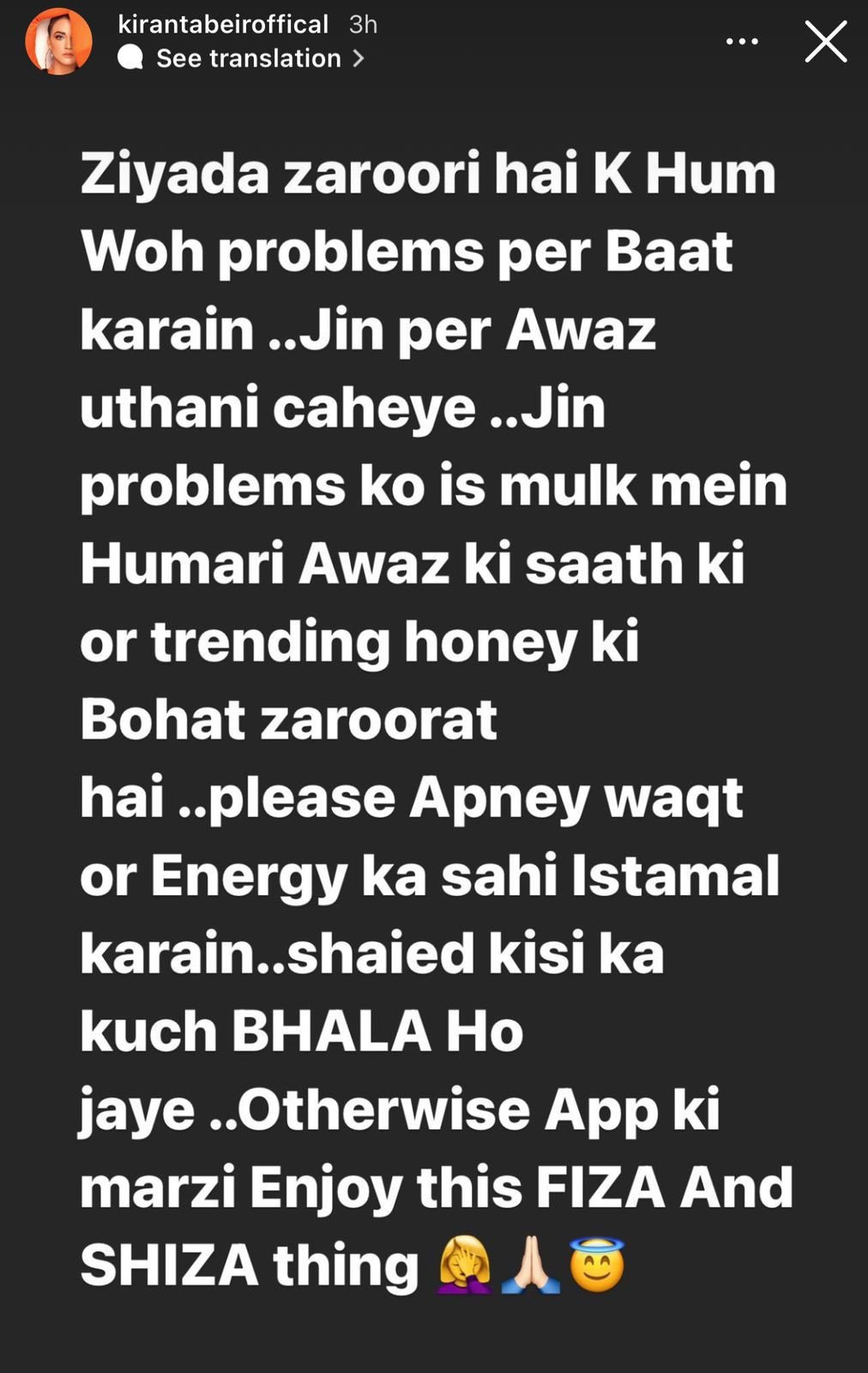“Please use your time and energy in a better way, maybe that’ll end up helping someone for the better. It’s your decision. Otherwise, enjoy this Fiza and Shiza thing.”