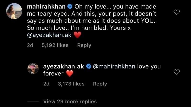 Humbled by the love, Mahira was quick to respond to the heartfelt post.