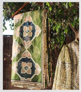Even the sillhouettes have an old-world charm. A full length peshwas with long churidar sleeves, oversized kurtas with wide-legged shalwars, embroidered organza dupattas with a gota finish, ghararas with a jaal and patch work motifs make up Mohsin’s newest offering, and we are sure the cuts and styles appeal to all age groups, which is what makes Cham Cham Cham a visually appealing treat!