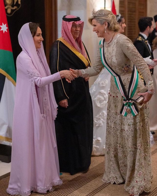 In a majestic celebration of love and royalty, the wedding reception of Jordan’s Crown Prince Hussain and Princess Rajwa of Saudi Arabia captivated attendees from around the globe. Among the sea of renowned international fashion brands, one creation emerged as a shining star, showcasing the creativity and talent of Pakistani artisans on a grand international platform. Designed by an esteemed Pakistani ethnic luxury wear brand, Mahpara Khan, the exquisite dress worn by Queen Maxima of the Netherlands was nothing short of a vision.