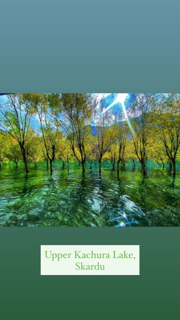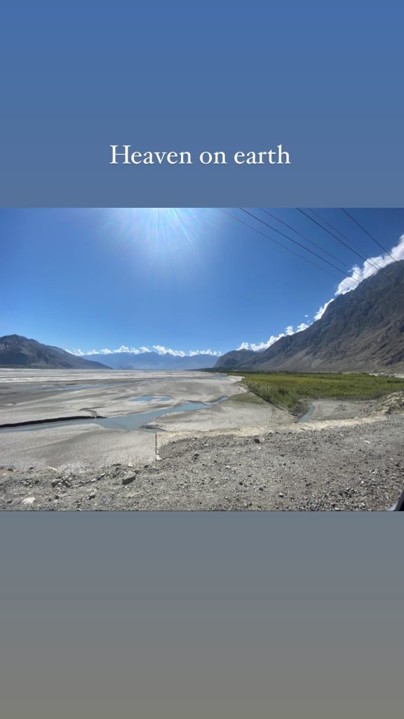 With picturesque backdrops, Ammara has filled her Instagram with pictures and stories of her northern vacation, posing in the middle of valleys, glaciers and fruit-laden trees.