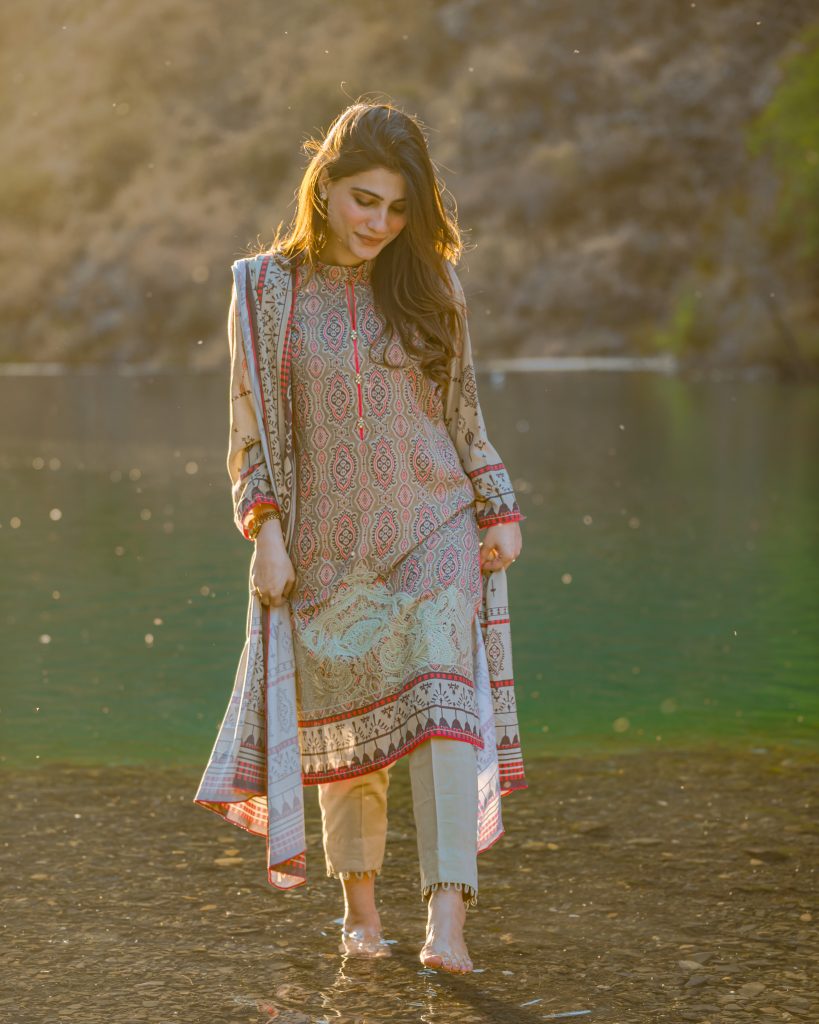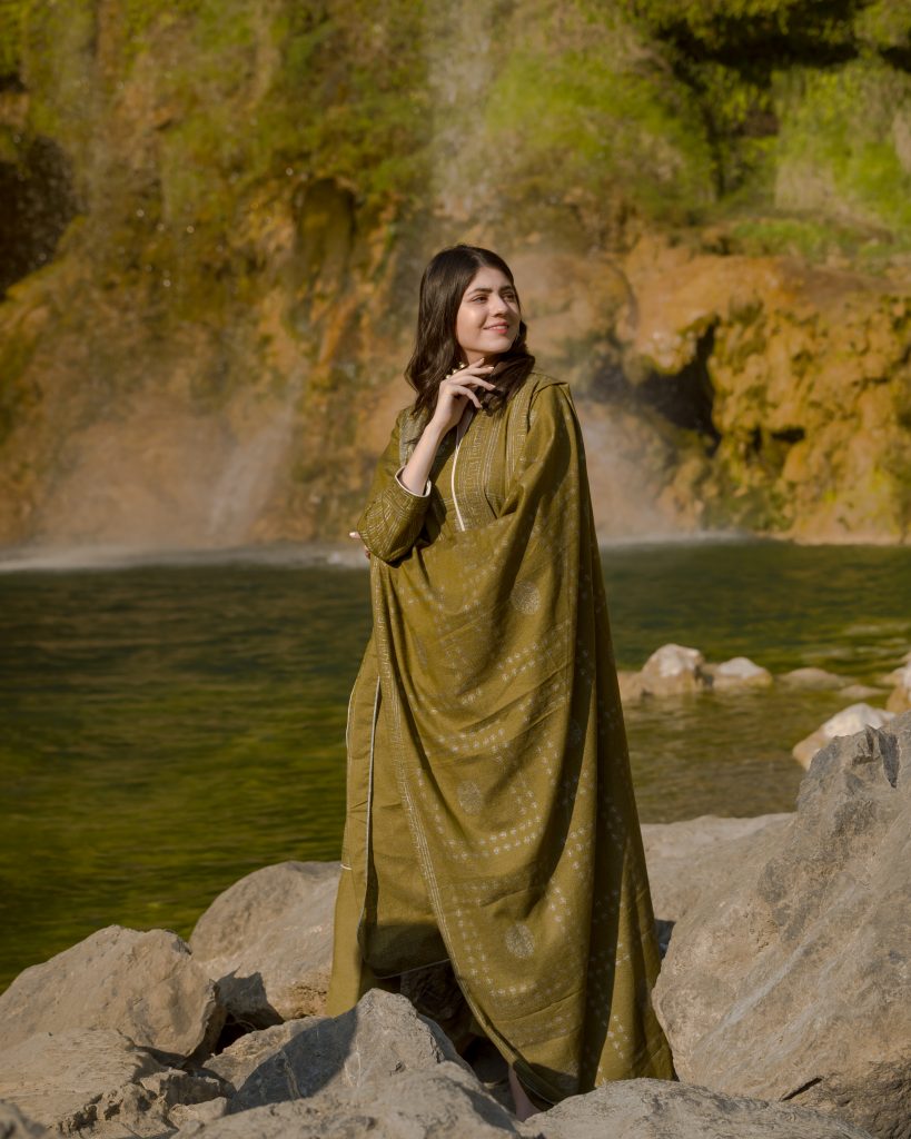 This was followed by a short visit to the Sajji Kot Waterfall. Chinar Road complemented the palettes of Alkaram’s winter wear with its autumn feels and mystic views. With crunchy leaves under the foot, the girls went for a memorable walk that was worth capturing.