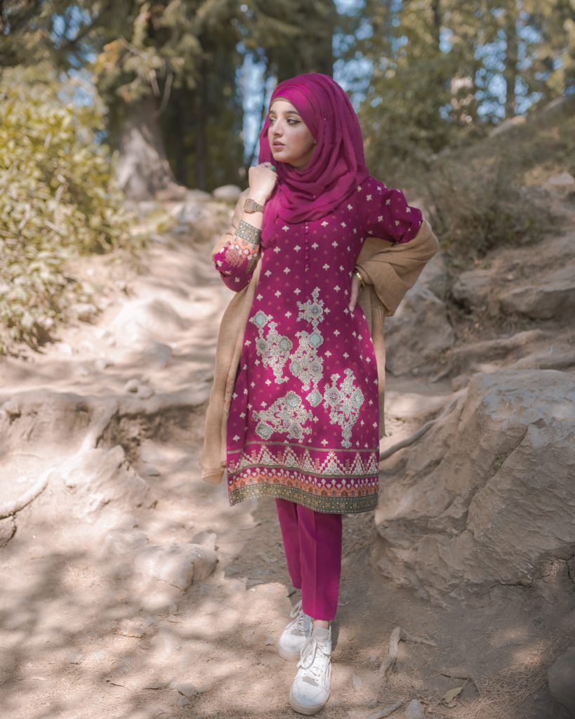 With a beautiful destination in mind, the brand came up with mellow yet striking winter fabrics to showcase through the influences. This was yet another step by Alkaram to focus on real-life experiences that matter rather than curated shoots. The #WrappedbyAlkaram campaign kicked off with alluring invites being sent to the influencers to join in for a winter escapade to Nathia Gali and showcase Alkaram’s Fall/Winter 2020 Collection. Alkaram set the tone for the forthcoming adventure with invites that included travel-friendly gifts like customized bag tags, travel pillows, an itinerary, and make-up products by Maybelline New York.